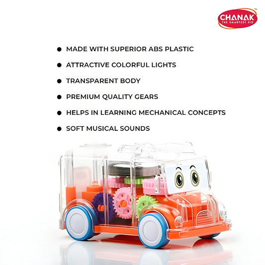 Transparent Musical Mini School Bus Toy For Kids